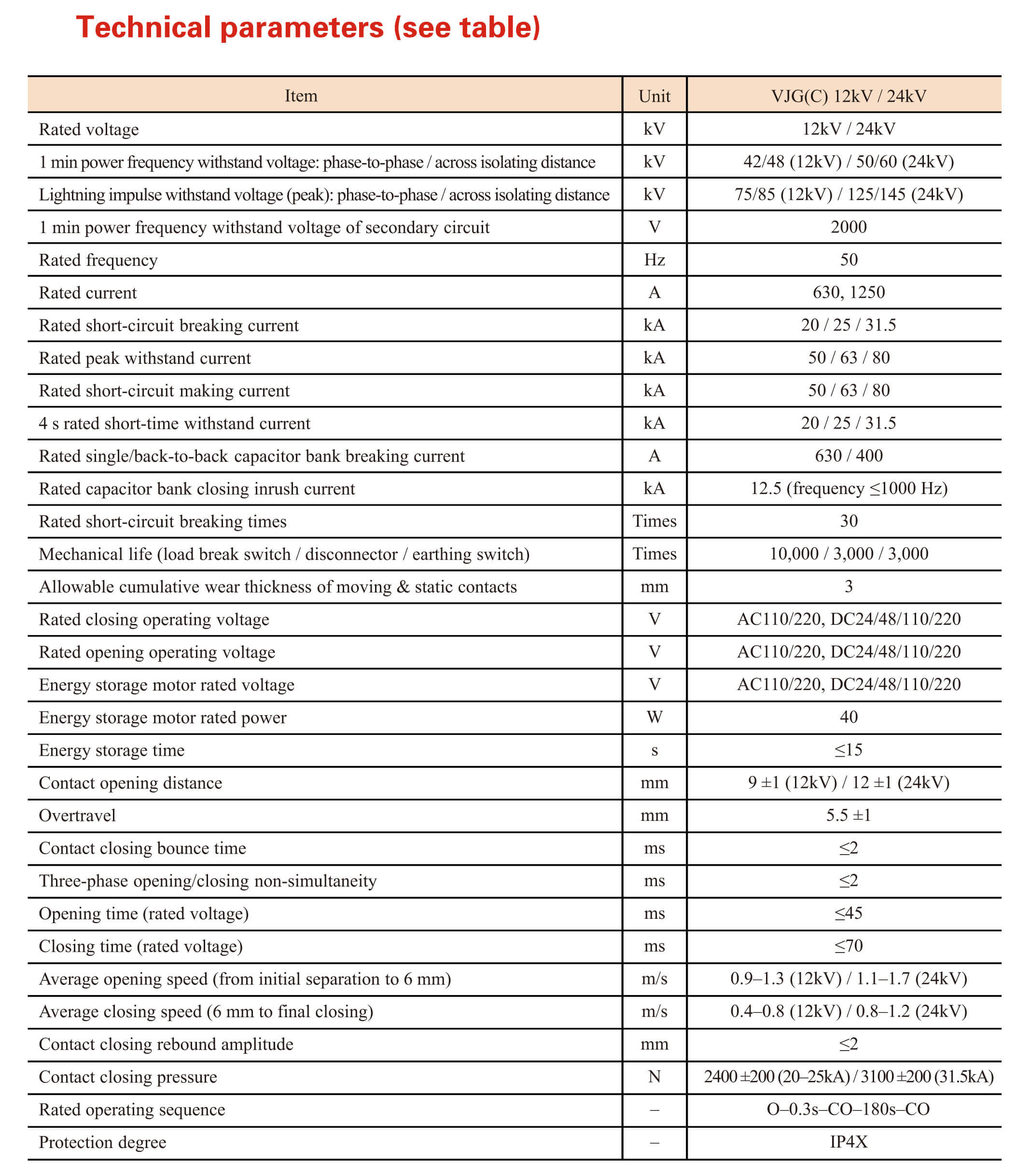 The VJG(C)-24GD vacuum switchgear is developed with European market requirements in mind: